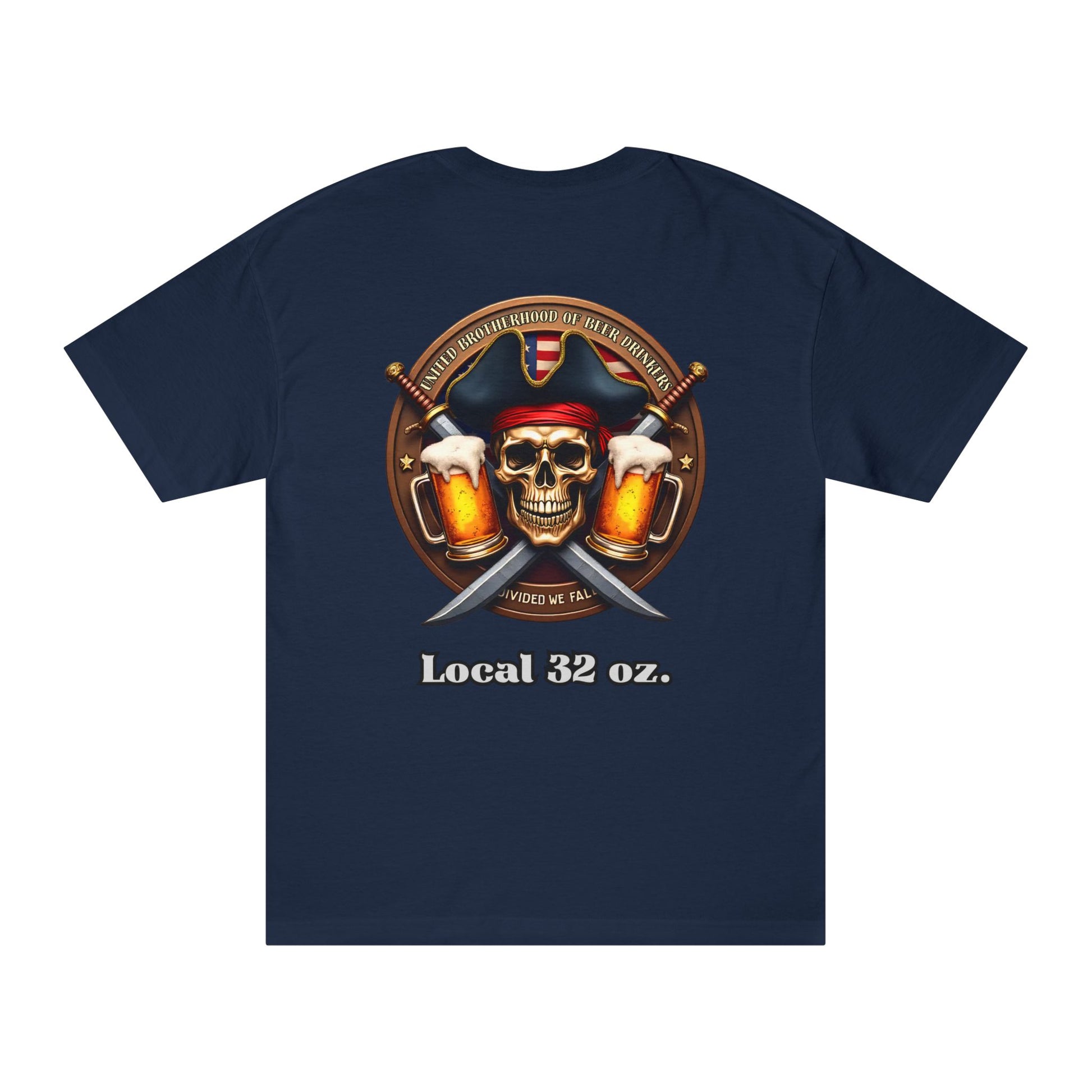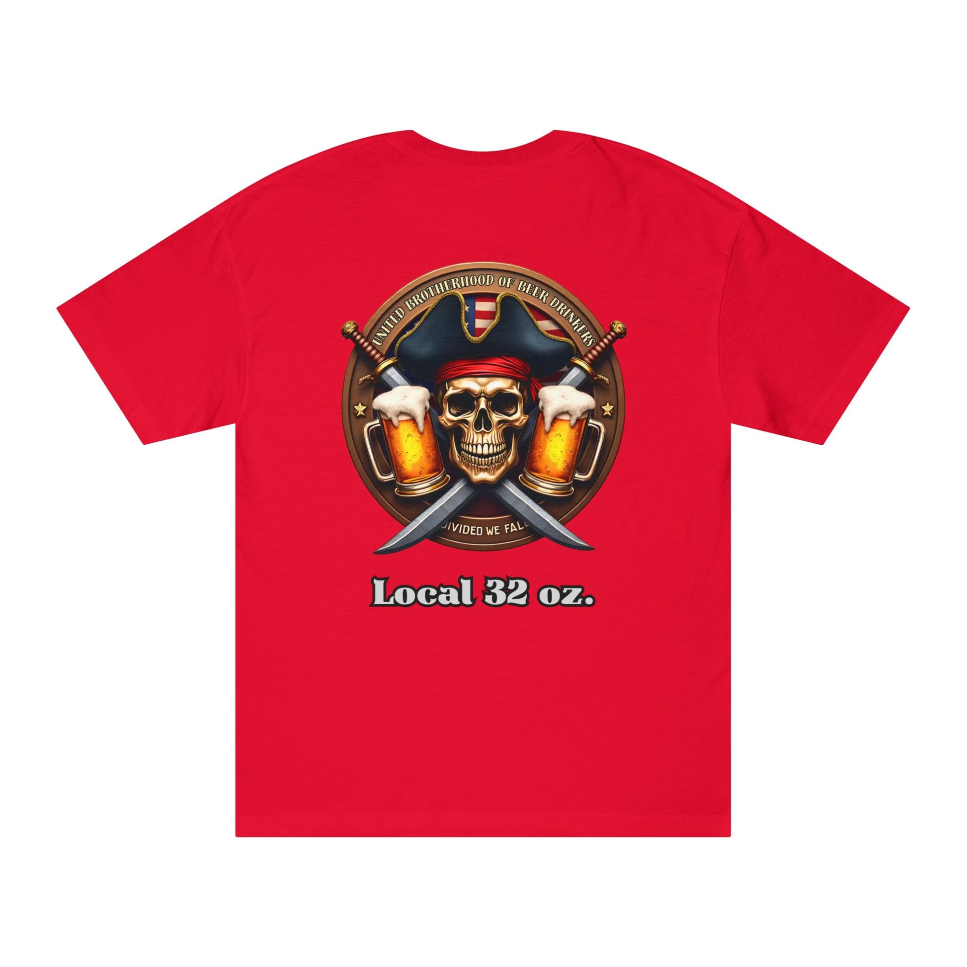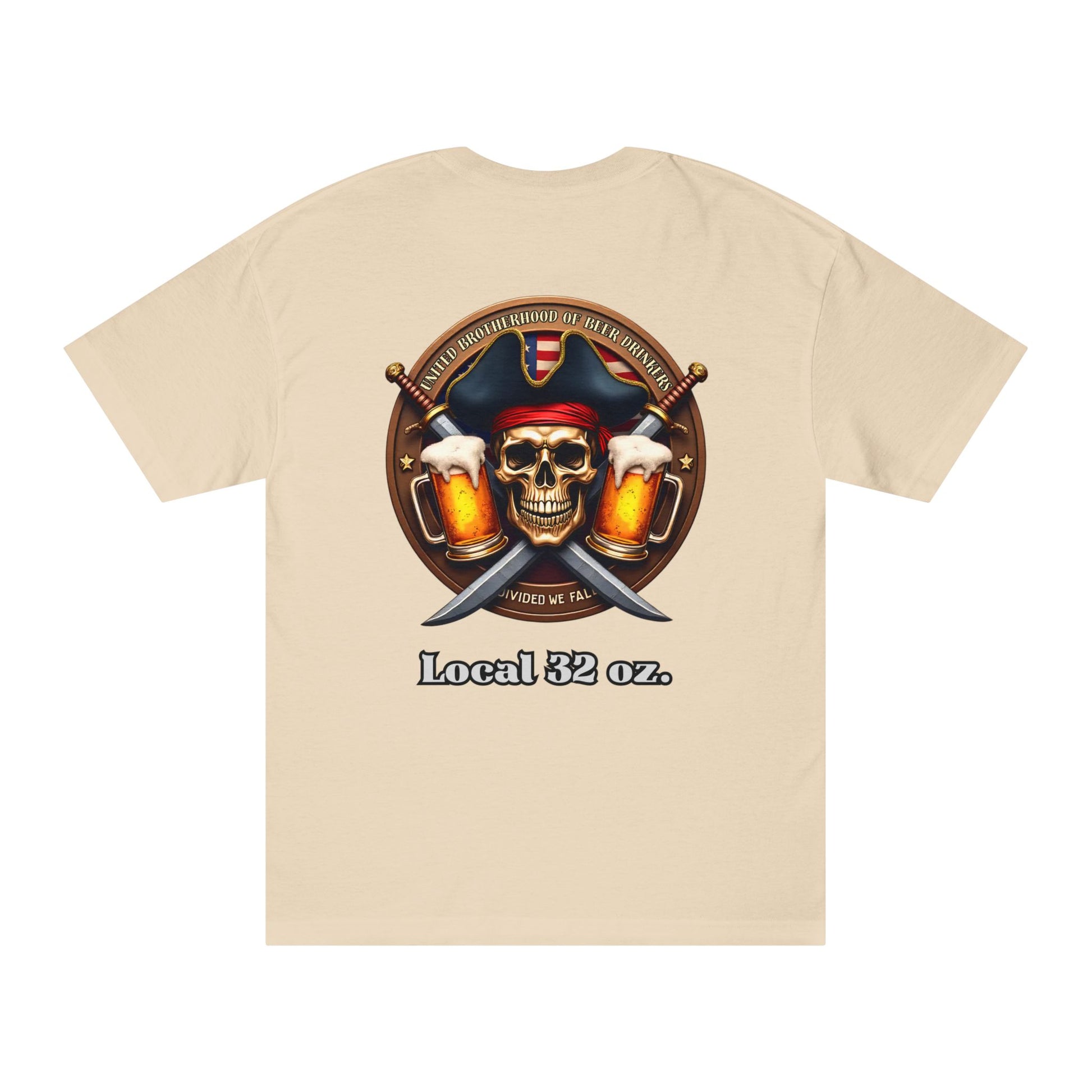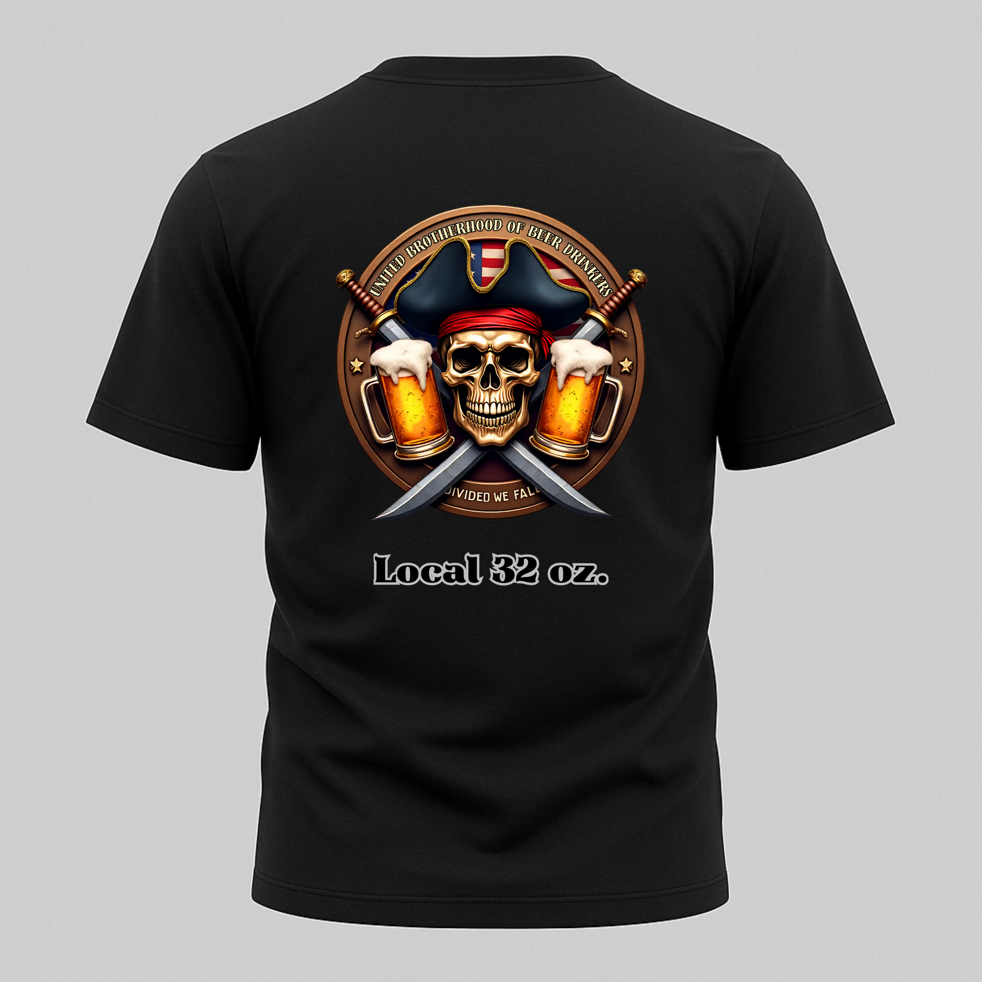 Arrr Mateys. This Beer Drinkers Union Local 32 oz. Pirate T-Shirt exudes a rebellious and fun vibe, perfect for casual wear or themed parties. It is ideal for beer enthusiasts and fans of pirate culture, making it a great conversation starter. Perfect for St. Patrick's Day celebrations or pirate-themed events.