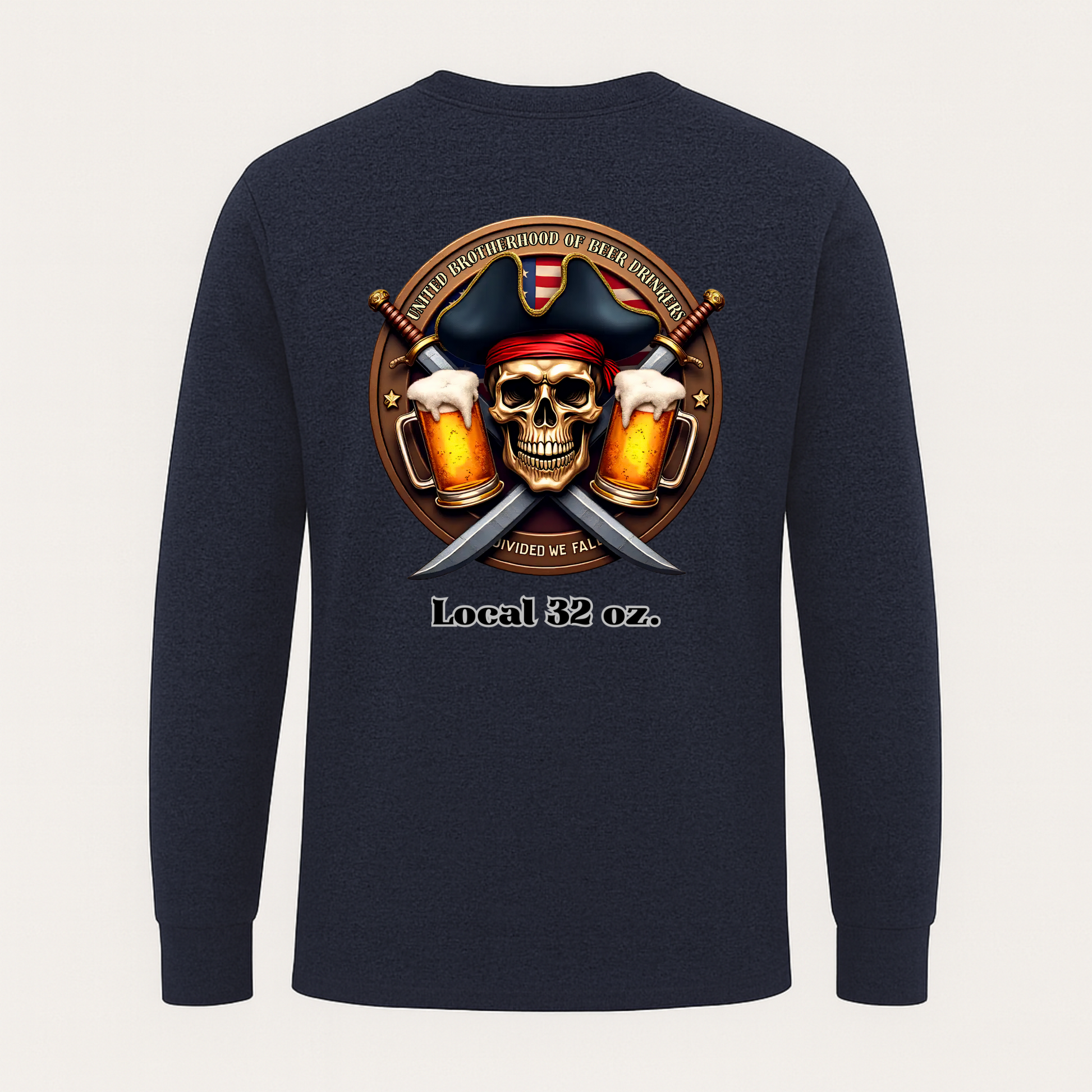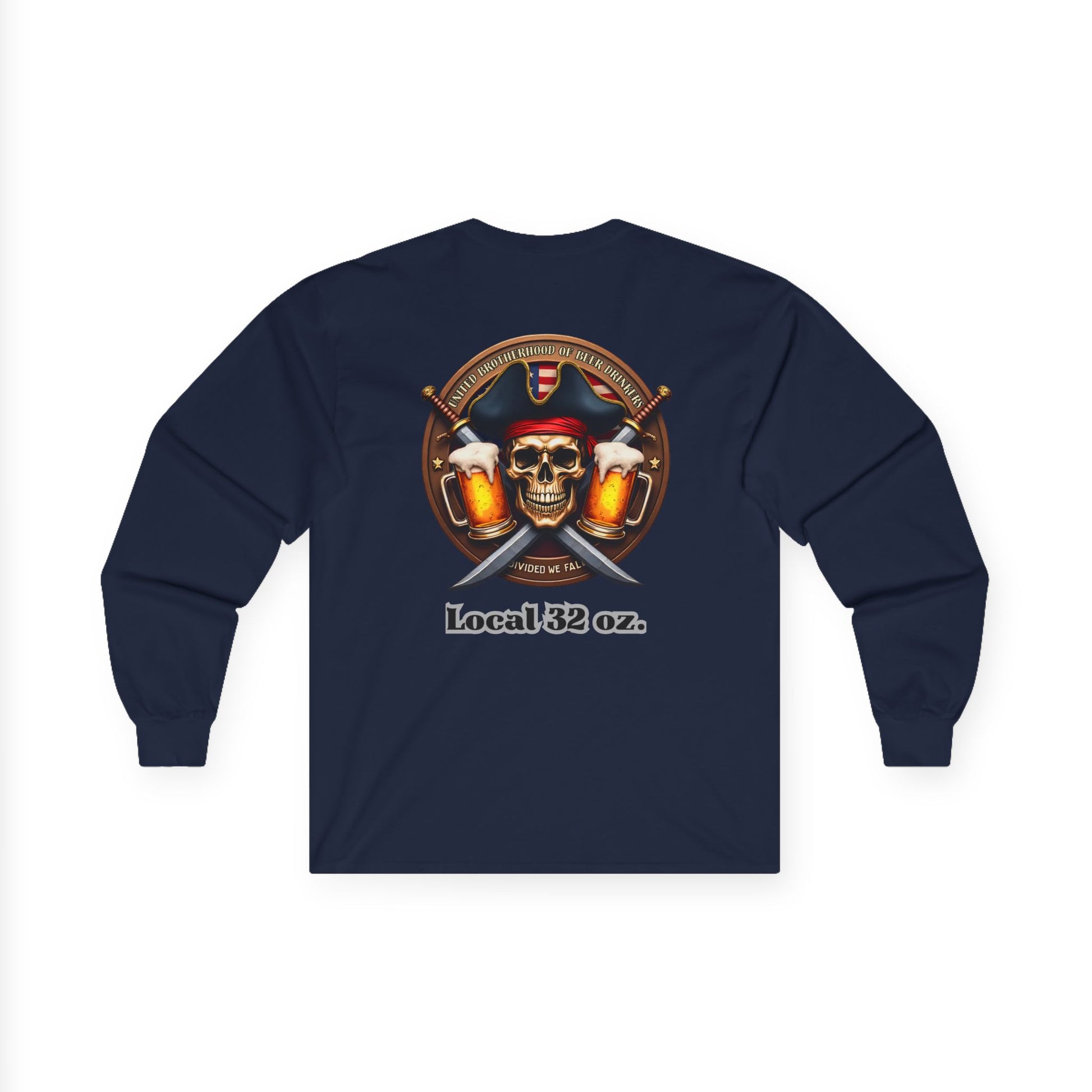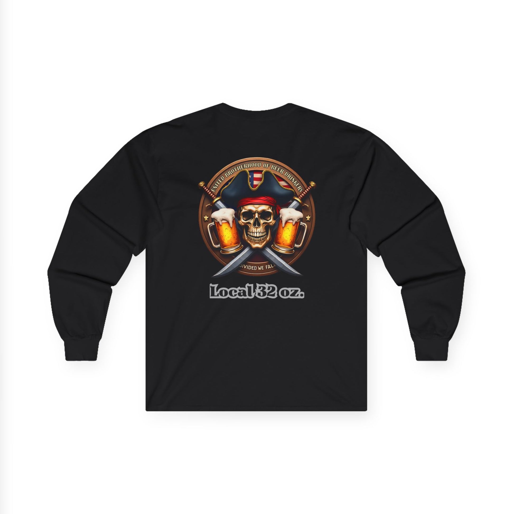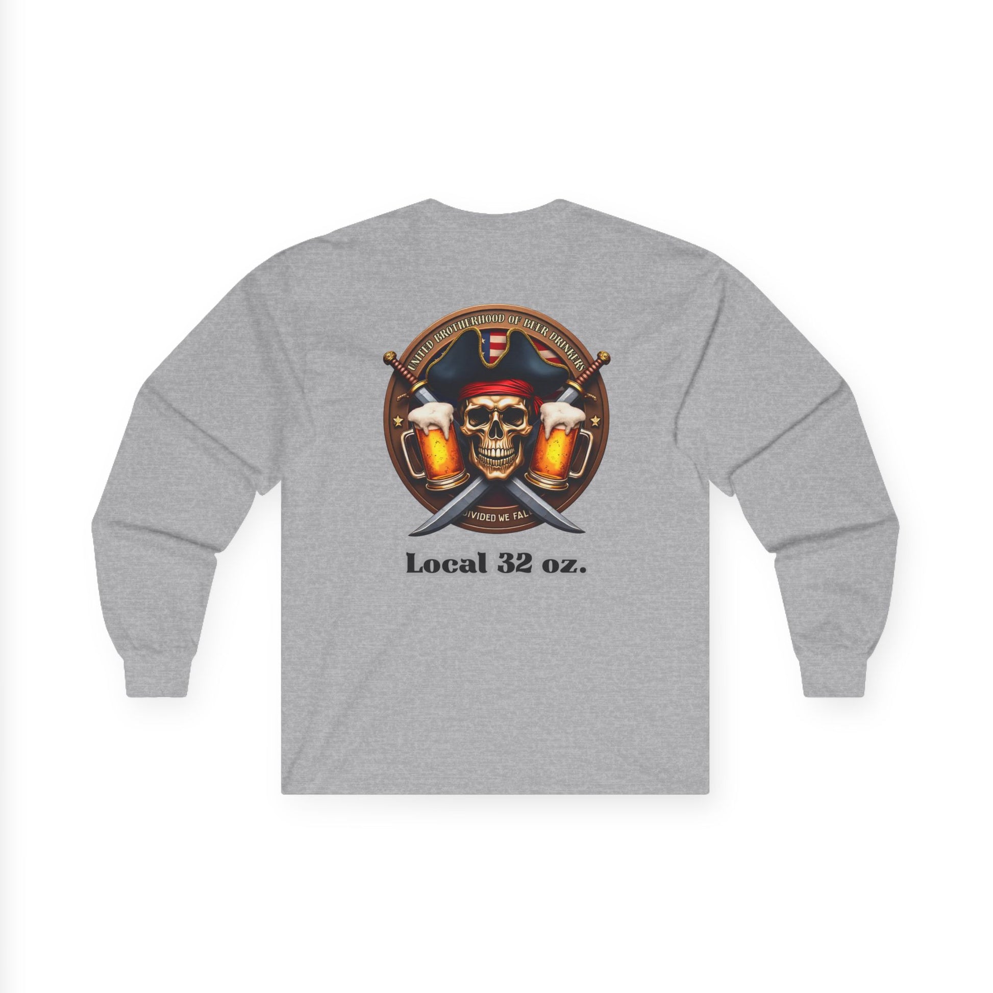 This Local 32 oz Pirate theme Long Sleeve Tee is made of heavy cotton, giving it a vintage feel. Perfect for casual wear or themed events, it adds a touch of quirky style to your wardrobe. Ideal for adults who enjoy unique and bold designs.