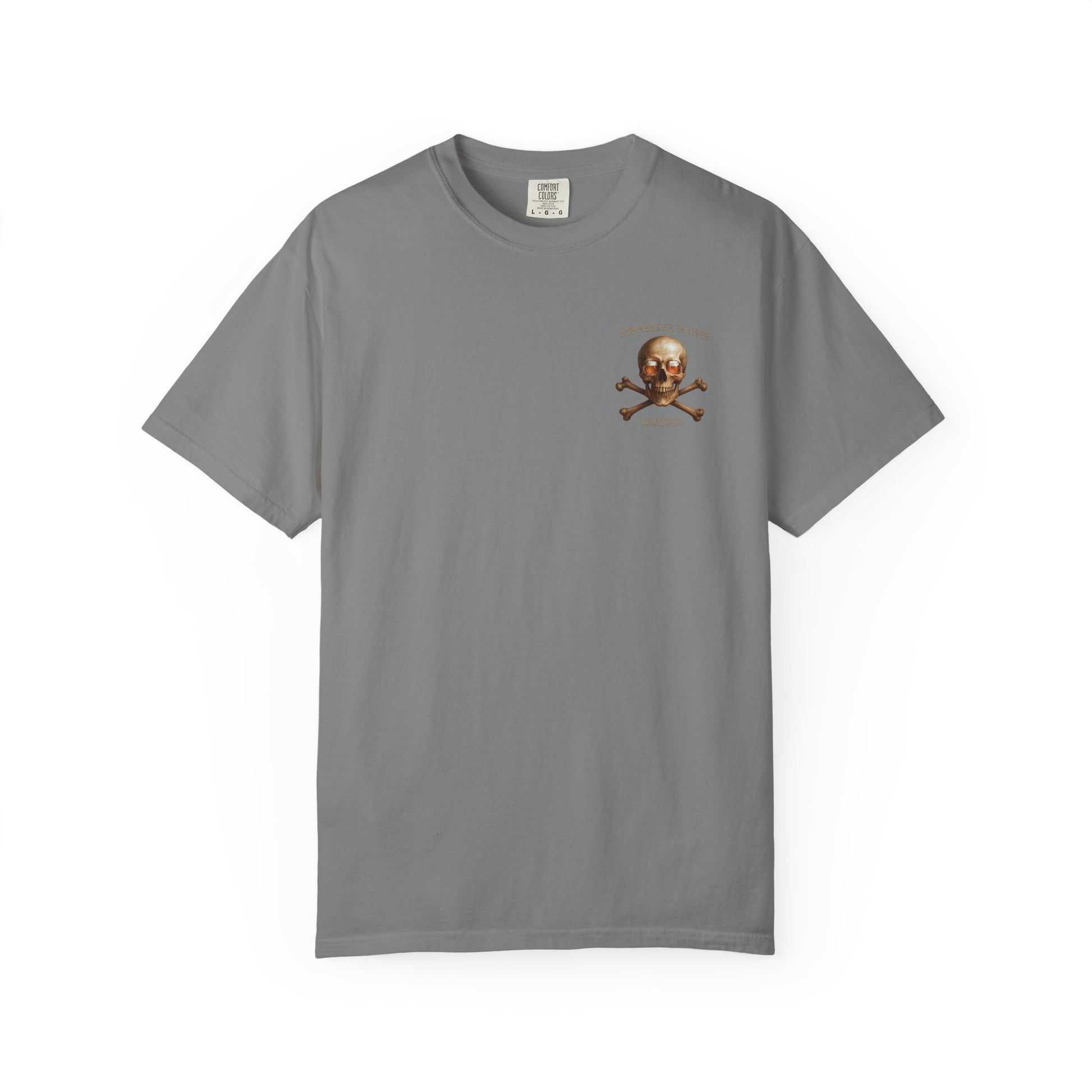 Skull and bones heavy cotton graphic dyed tee for those who love edgy and bold styles. Perfect for casual wear or as a statement piece. Ideal for alternative fashion enthusiasts.